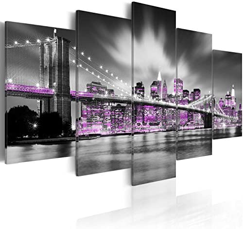 murando Cuadro en Lienzo 200x100 cm New York City Impresión de 5 Piezas Material Tejido no Tejido Impresión Artística Imagen Gráfica Decoracion de Pared - Ciudad Noche Nueva York d-A-0022-b-nmurando - Cuadro en Lienzo 200x100 cm Impresión de 5 Piezas Material